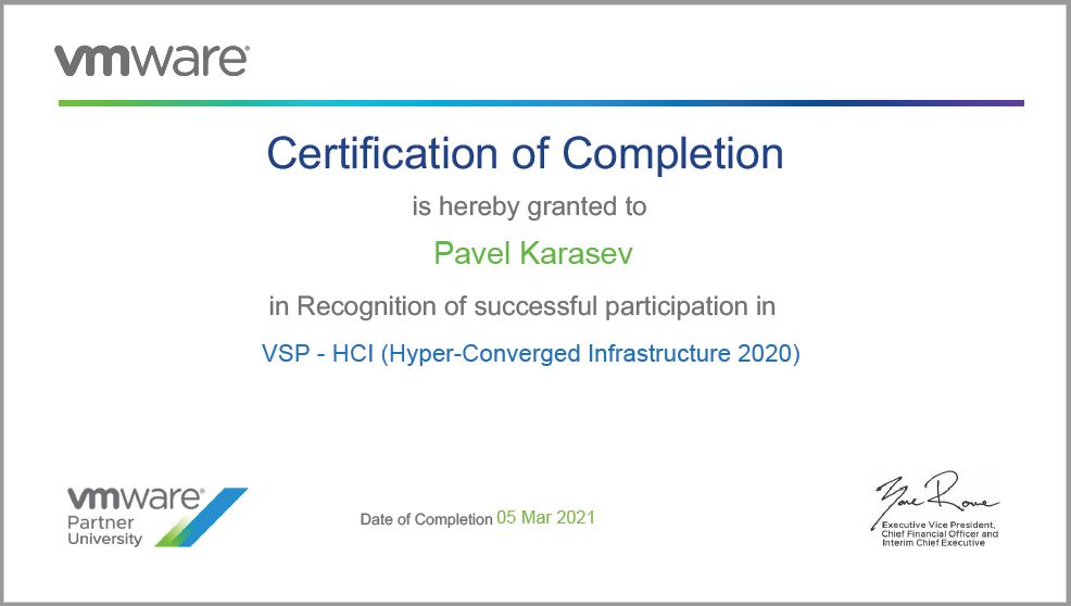 Компания V-GRADE (Progress-Media) получила компетенцию VMware HCI (Hyper-Converged Infrastructure).